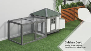 Turn your backyard into a cozy chicken retreat with this beautifully designed 77" wooden chicken coop. Built for comfort, safety, and low-maintenance care, this all-in-one hen house features a spacious main living area, a secure outdoor run, and a private nesting box that encourages stress-free egg laying.